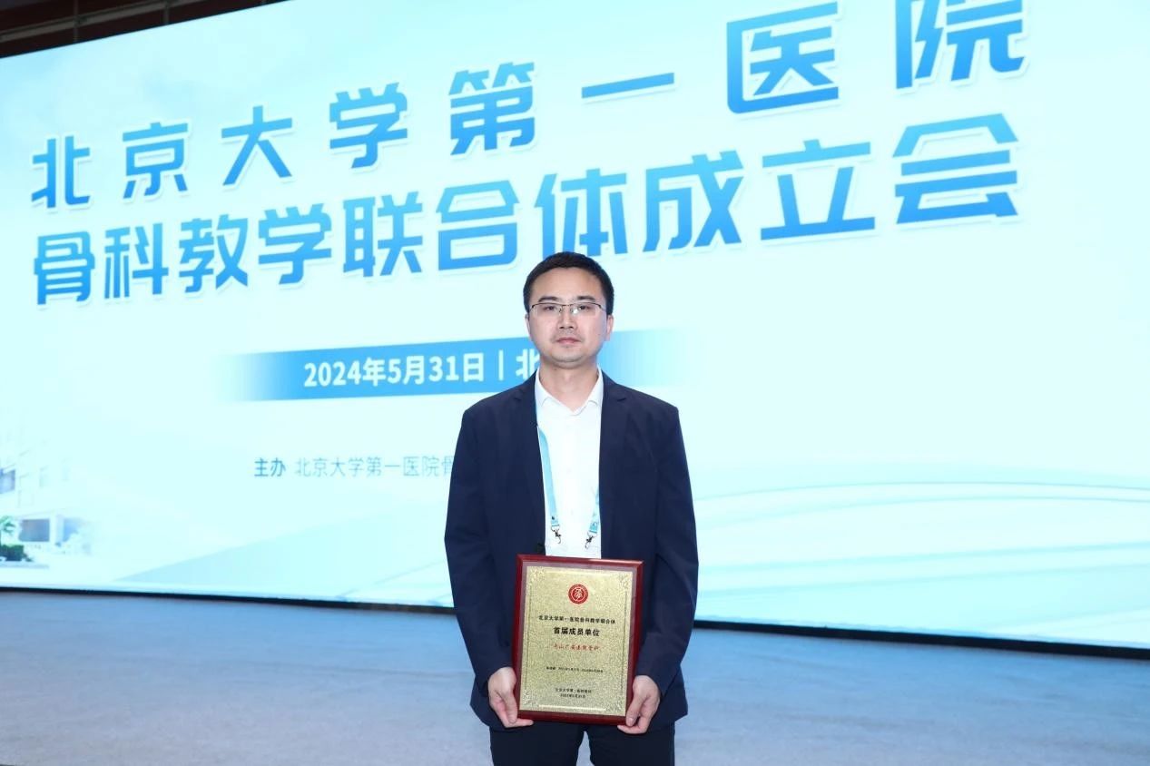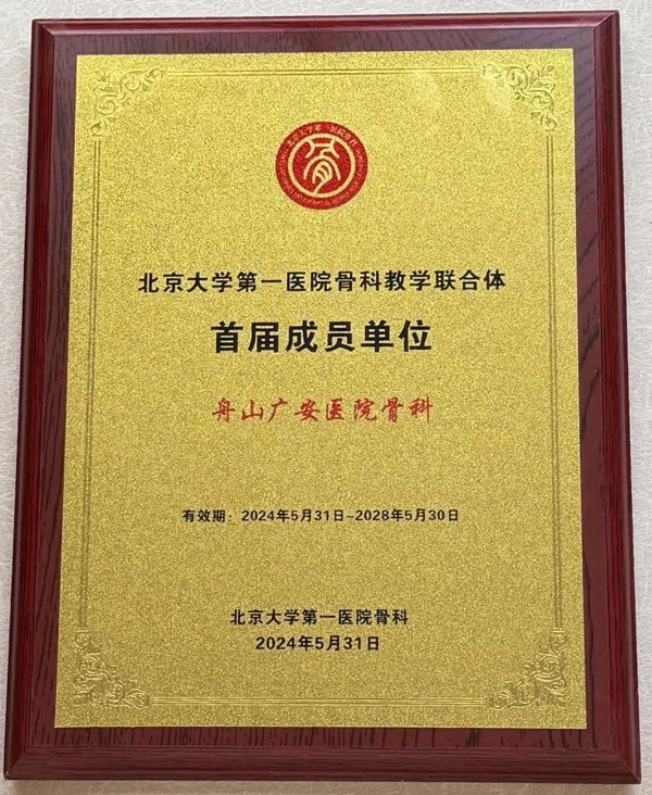 2024年5月31日,北京大學(xué)第一醫(yī)院(以下簡稱北大醫(yī)院)骨科教學(xué)聯(lián)合體(以下簡稱教聯(lián)體)成立會在北京成功召開。來自全國各地的大醫(yī)院代表參會,舟山廣安醫(yī)院成為北京大學(xué)第一醫(yī)院骨科教學(xué)聯(lián)合體首屆成員單位,骨科中心羅軍主任受邀參加成立大會,上臺領(lǐng)取教聯(lián)體合作單位證書。