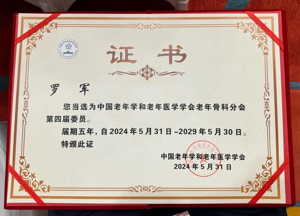 2024年5月31日,中國老年學和老年醫(yī)學學會老年骨科分會(以下簡稱“老年骨科分會”)在北京成功舉行換屆選舉大會。北京大學第一醫(yī)院曹永平教授當選第四屆老年骨科分會主任委員,北京大學首鋼醫(yī)院關振鵬當選總干事,舟山廣安醫(yī)院羅軍主任當選為第四屆老年骨科分會委員。