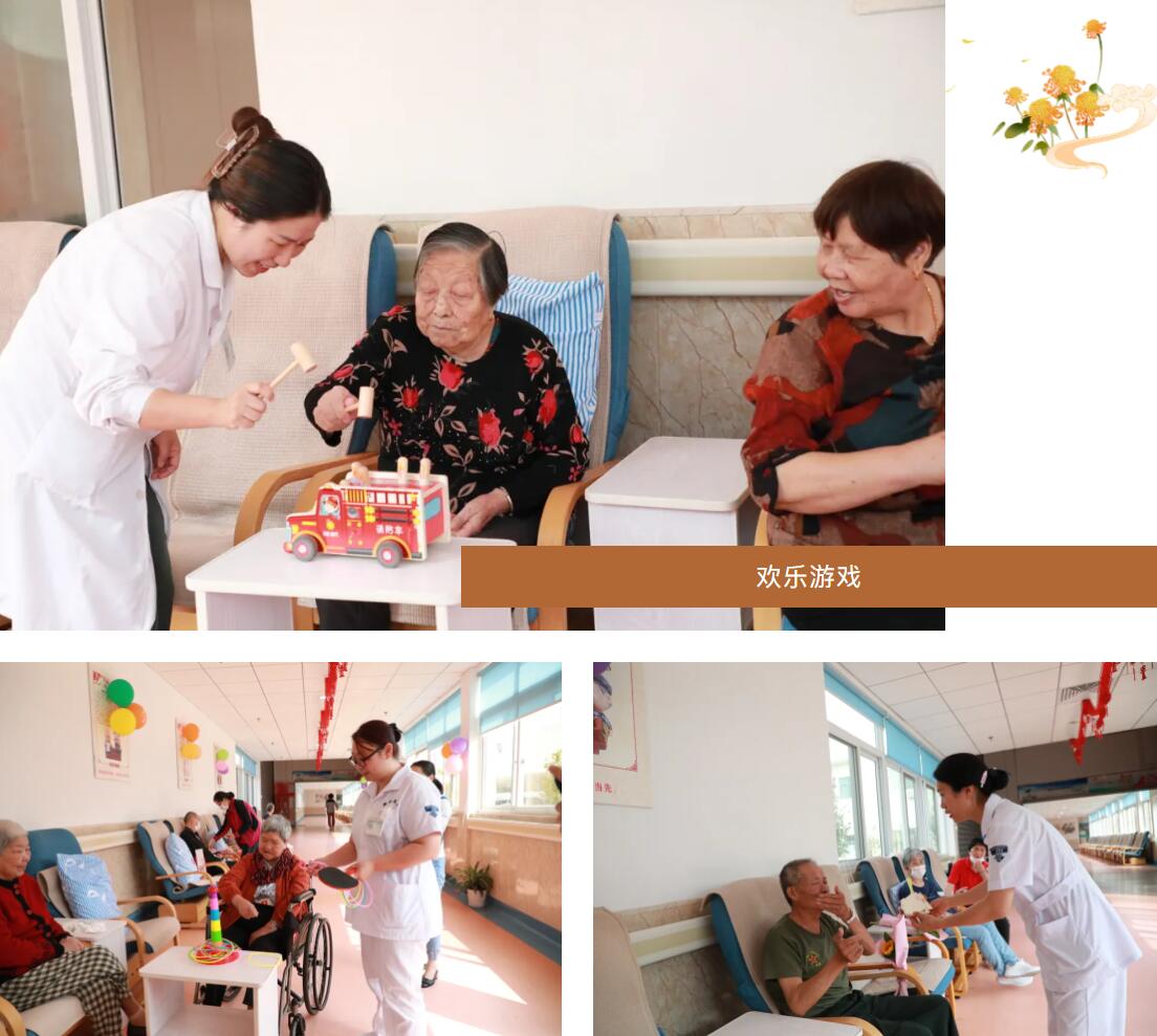 重陽節(jié)這天,頤養(yǎng)院里熱鬧非凡。醫(yī)護(hù)人員們精心準(zhǔn)備了猜字謎、小游戲、競賽有獎等各類節(jié)目。老人們的積極性被充分調(diào)動起來,他們仿佛回到了年輕的時(shí)候,充滿了活力和熱情。在游戲中,我們與老人們拉近了距離,歡聲笑語不斷。