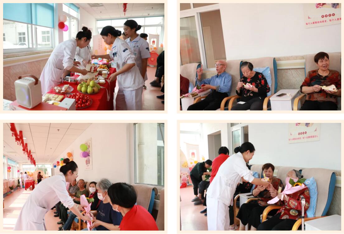 頤養(yǎng)院的醫(yī)護(hù)人員們在護(hù)理部領(lǐng)導(dǎo)的帶領(lǐng)下帶著滿心的關(guān)懷與溫情,為院內(nèi)的老人們送去了精心鮮花和水果糕點(diǎn)。工作人員們拉著老人的手,耐心詢問他們的身體狀況,以及是否有什么特別的需要或愿望,那份耐心與真誠,讓老人們臉上洋溢著幸福的笑容。