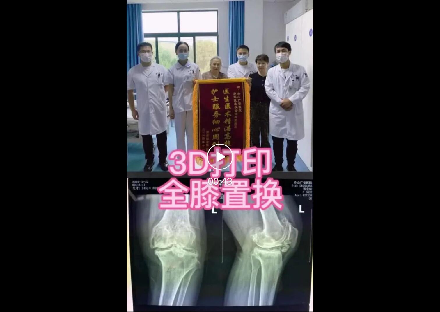 住院后,羅院長(zhǎng)立即給阿婆安排一對(duì)一術(shù)前規(guī)劃、術(shù)前3D打印,做到了關(guān)節(jié)置換的“量身定制”,最終在羅軍手術(shù)團(tuán)隊(duì)的努力下阿婆順利完成了機(jī)器人輔助下左側(cè)人工全膝關(guān)節(jié)置換手術(shù)治療。