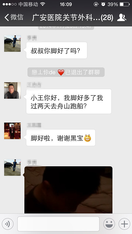 現(xiàn)在,舟山廣安骨上醫(yī)院關節(jié)外科創(chuàng)立了醫(yī)患微信群--一個可以聯(lián)系陌生人、朋友、親人的平臺,搭起了醫(yī)患之間溝通的橋梁。