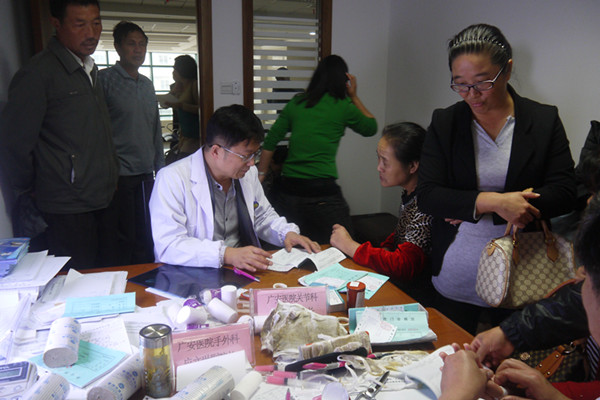 大病區(qū)主任兼手外科應(yīng)文世主任為病人看病