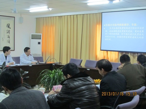 2013年1月16日下午,普陀區(qū)衛(wèi)生局綜合目標考核組領導對我院進行綜合目標考核的檢查。本次檢查主要針對醫(yī)院各個職能科室。郭維杰院長還對醫(yī)院的情況以及2012年度醫(yī)院主要業(yè)績進行了工作匯報。最終我院順利地通過了此次檢查,不過,在檢查中,也發(fā)現(xiàn)了我院仍存在一些問題,通過專家組的點評和指導,相信我院一定能改進這些問題,發(fā)展的越來越好。