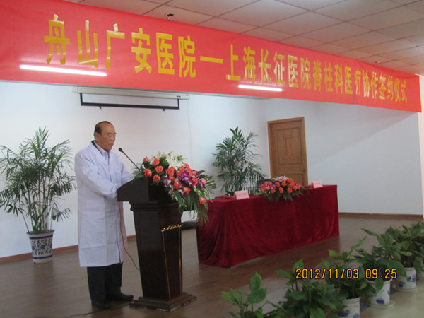 為了解決舟山海島群眾看病難,看名醫(yī)更難的難題,經(jīng)前期各項(xiàng)準(zhǔn)備,我院與上海長(zhǎng)征醫(yī)院賈連順教授的專家團(tuán)隊(duì)將進(jìn)行長(zhǎng)期定向協(xié)作,并于2012年11月3日上午隆重舉辦了協(xié)議簽訂暨專家首診儀式。上海長(zhǎng)征醫(yī)院賈連順教授、邵將教授、錢列教授等專家出席本次簽約儀式,我院郭維杰院長(zhǎng)、劉志安副院長(zhǎng)以及全體工作人員共同參與本次簽約儀式,舟山市社保局醫(yī)療工傷管理中心石主任、普陀區(qū)衛(wèi)生局汪副局長(zhǎng)以及海氏集團(tuán)領(lǐng)導(dǎo)也共同參與,并有多加媒體進(jìn)行拍攝采訪。