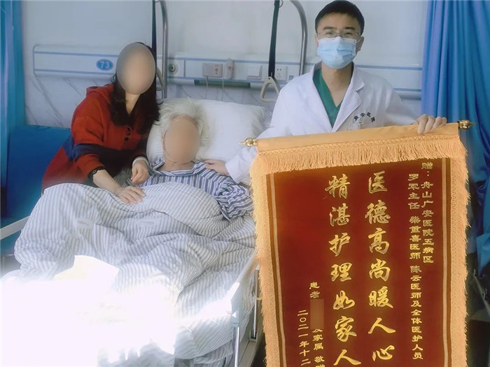 對(duì)于母親的恢復(fù)情況,患者女兒表示由衷的欣慰及感謝,母親的一點(diǎn)點(diǎn)進(jìn)步與改善,都在“曬”在朋友圈。為表示感激,她特地定制一面錦旗送予羅軍主任團(tuán)隊(duì),以感謝他們精湛的醫(yī)技和貼心的照顧。