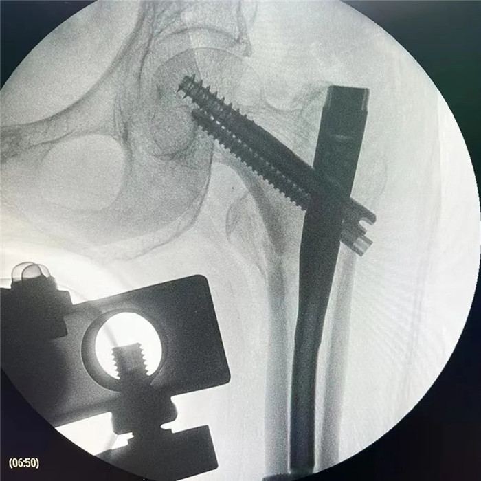在手術(shù)團(tuán)隊(duì)及患者家屬的大力支持下,羅軍主任團(tuán)隊(duì)為洪阿婆實(shí)施了閉合復(fù)位INTERTAN內(nèi)固定術(shù)。雖然手術(shù)風(fēng)險(xiǎn)較大,但憑借精湛的技術(shù)及豐富的臨床經(jīng)驗(yàn),手術(shù)十分成功而且僅僅用了1個(gè)小時(shí),術(shù)中出血不多,術(shù)后患者恢復(fù)得很好,第二天就可以在起床活動(dòng),極大的提高了患者的生活質(zhì)量,避免了長期臥床造成的并發(fā)癥。