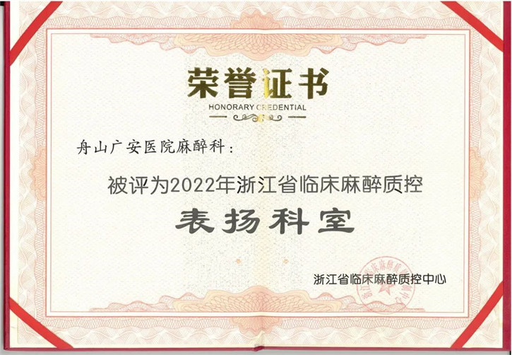 舟山廣安醫(yī)院麻醉科榮獲