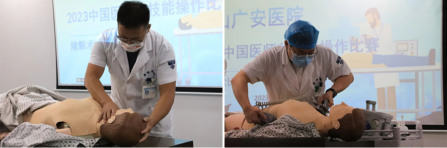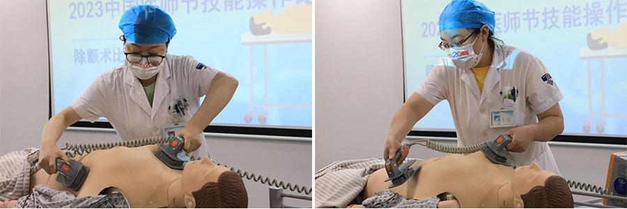 此次競(jìng)賽結(jié)合臨床實(shí)際,設(shè)置場(chǎng)景:患者在搶救室治療過(guò)程中,突發(fā)心跳呼吸驟停、室顫,臨床醫(yī)師到達(dá)搶救室對(duì)患者進(jìn)行搶救。
