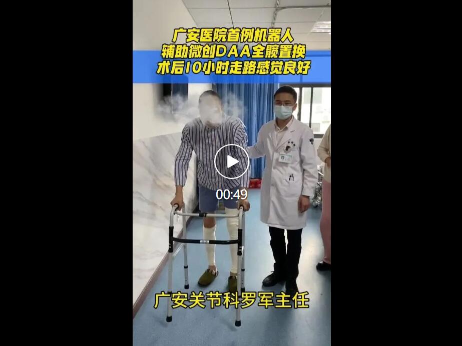 “一點(diǎn)也不痛!術(shù)后10個(gè)小時(shí)下地走路,機(jī)器人手術(shù)感覺太好了!感謝廣安醫(yī)院羅軍主任手術(shù)團(tuán)隊(duì)!”2月7日,舟山廣安醫(yī)院關(guān)節(jié)科羅軍主任團(tuán)隊(duì)成功完成首例機(jī)器人輔助下DAA微創(chuàng)全髖關(guān)節(jié)置換術(shù),術(shù)后,患者激動(dòng)地說。