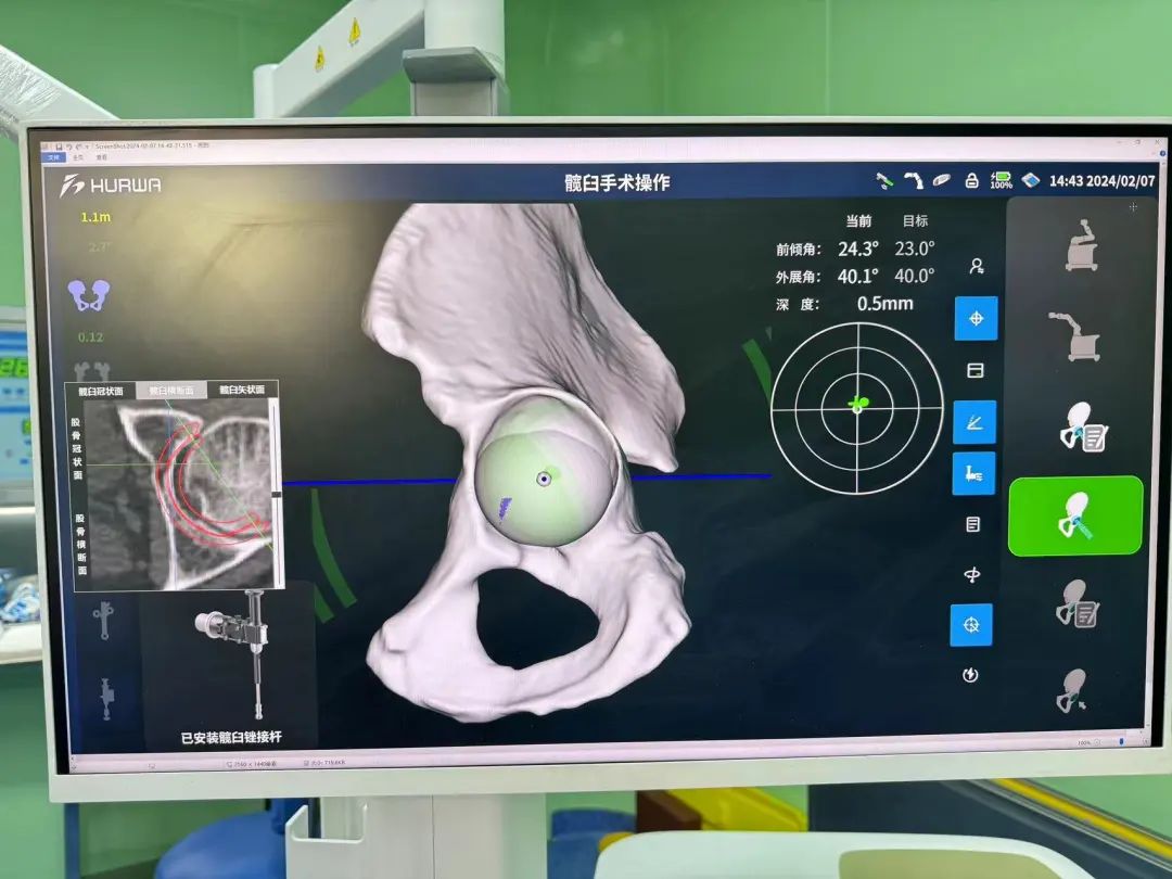 術(shù)中,羅軍團(tuán)隊(duì)通過DAA微創(chuàng)手術(shù)入路,術(shù)中不切斷患者的任何肌肉,并根據(jù)機(jī)器人提供的三維立體圖像,操作機(jī)械臂精準(zhǔn)定位到預(yù)期規(guī)劃位置,完成“毫米級(jí)”精準(zhǔn)微創(chuàng)的髖關(guān)節(jié)置換。