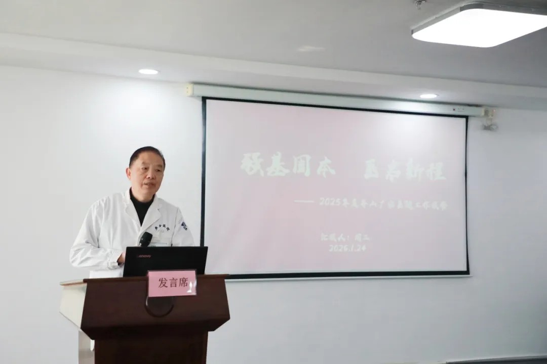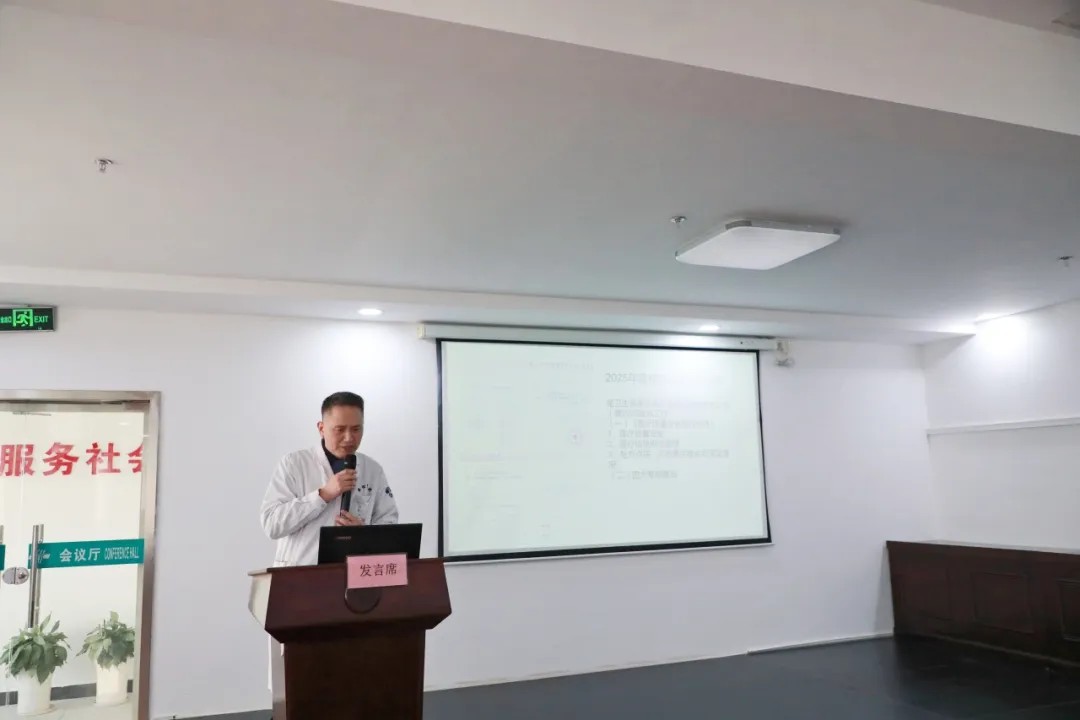 會議伊始,周正副院長發(fā)表了《強基固本、醫(yī)啟新程》的年度工作報告。他全面總結(jié)了2025年度醫(yī)院在強基固本方面所取得的顯著成效。在醫(yī)療質(zhì)量提升上,堅守底線,筑牢醫(yī)療質(zhì)量與安全根基;在學(xué)科建設(shè)上,引育并舉,推動人才培養(yǎng)與學(xué)科內(nèi)涵發(fā)展;精準(zhǔn)施策,深化市場營銷與品牌推廣;數(shù)字賦能,加速醫(yī)院信息化與智慧化建設(shè);強化整治,推進安全生產(chǎn)工作扎實有效。