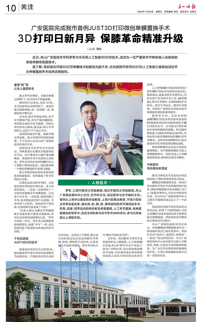 廣安人懷揣著對于醫(yī)療的敬畏和對舟山人的大愛,將以更加昂揚(yáng)的姿態(tài)和海納百川的胸懷,不斷把學(xué)科建設(shè)和醫(yī)療技術(shù)水平推向更高的境界,服務(wù)舟山、造福社會(huì)。